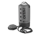 Sie befüllen den Tank mit warmen oder kalten Wasser, welches Sie dann in der Sonne erwärmen können. Mit der beiliegenden Fußpumpe geben Sie Druck auf den Behälter. Um den Druck zu erhöhen oder während der Wasserentnahme gleichbleibend aufrecht zu halten, können Sie jederzeit nachpumpen.
